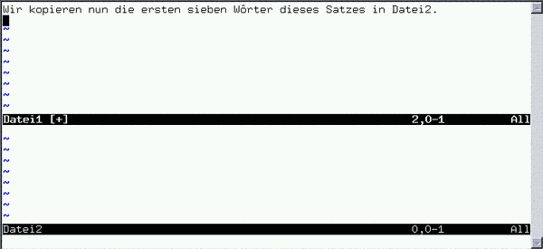 Wie im Emacs können Sie verschiedene Puffer gleichzeitig anzeigen lassen. Dazu verwenden Sie das Kommando :split.