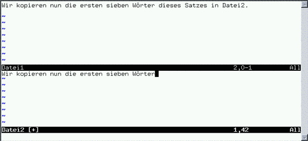 [3] | y7w heißt wörtlich: "Yank 7 words", also auf deutsch: ,,kopiere sieben Wörter``. |