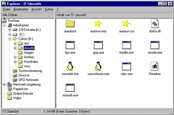 ![]() | In diesem Beispiel verwenden wir den Buchstaben D: für das CD-ROM-Laufwerk. Je nach Konfiguration Ihres Rechners kann das natürlich ein anderer sein. |