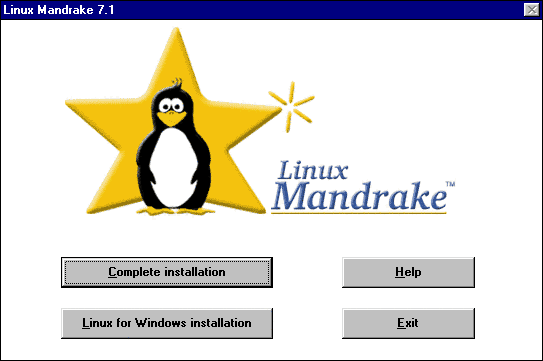Linux for Windows installation: Durch Betätigung dieser Schaltfläche wird eine Lnx4Win Installation von Linux-Mandrake gestartet.